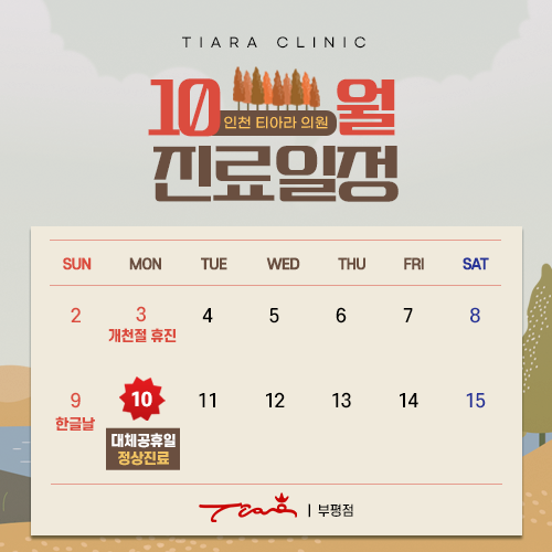 안녕하세요, 곧 다가오는 10월 진료일정 안내드립니다.