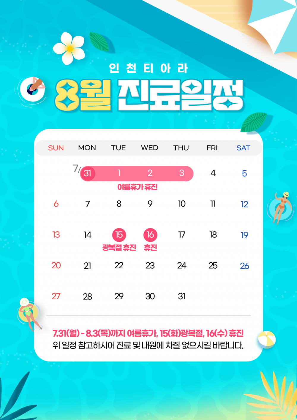 인천티아라 8월 진료일정 안내 페이지 정보 작성자 관리자 작성일23-07-27 15:50 조회3,219회 댓글0건 관련링크 이전글 다음글 목록 본문 인천티아라 8월 진료일정 안내드립니다. 댓글목록 등록된 댓글이 없습니다. 이전글 다음글 목록