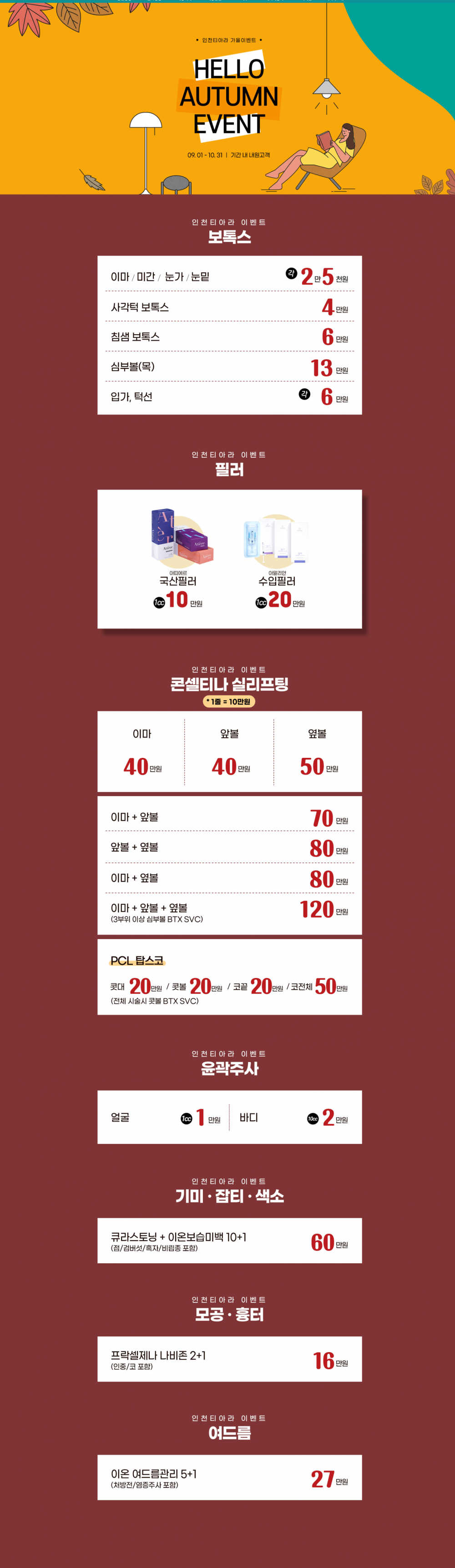 인천티아라 9&10월 이벤트 페이지 정보 작성자 관리자 작성일21-09-09 10:12 조회3,143회 댓글0건 관련링크 이전글 다음글 목록 본문 이벤트 안내드립니다. 인천티아라 이번 가을 혜택 확인하시고 많이 받아가세요 :) 댓글목록 등록된 댓글이 없습니다. 이전글 다음글 목록