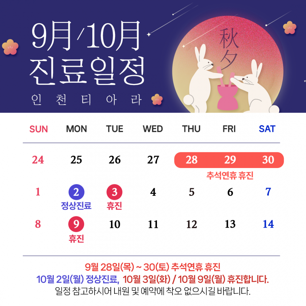 인천티아라 9월 진료일정 안내