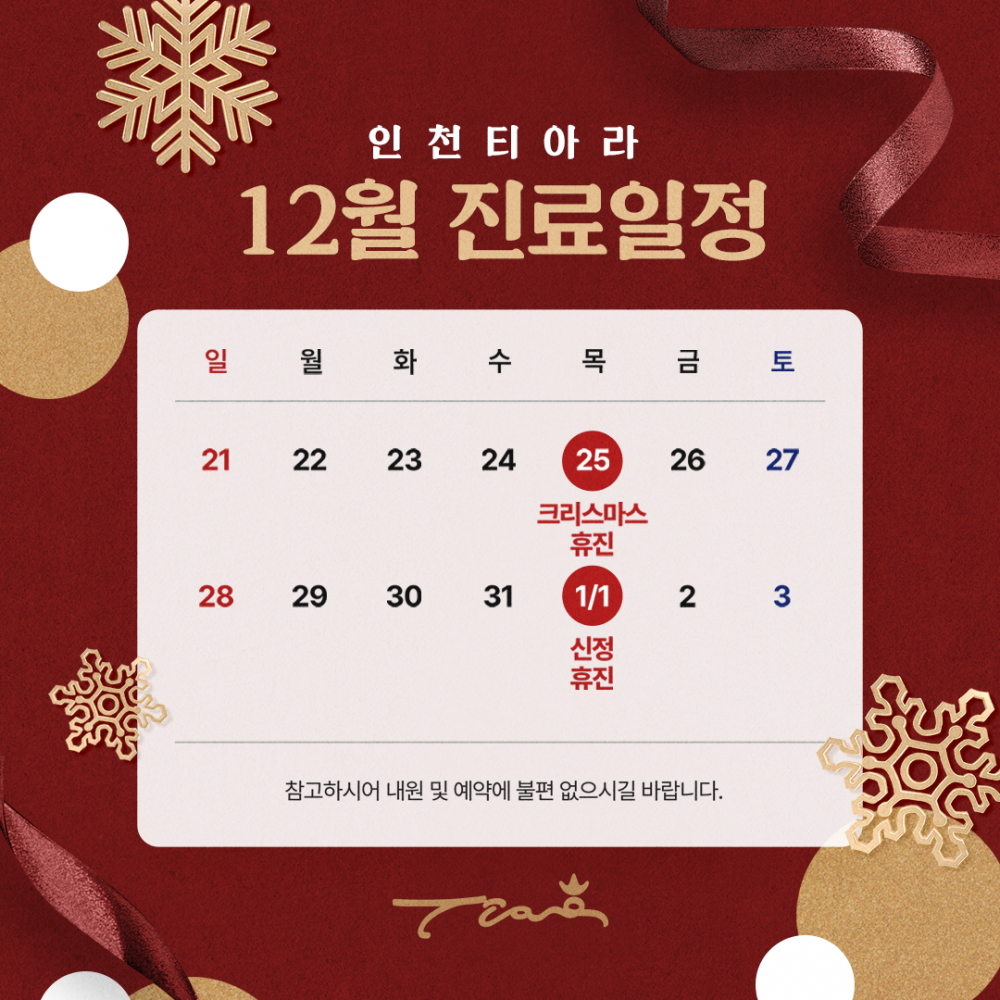 인천 티아라 12월 진료일정 안내